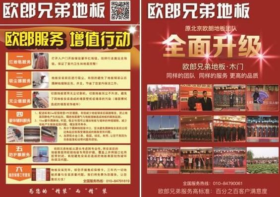 欧郎兄弟地板•木门——独特的红地毯服务、吸尘器服务、无尘锯服务和防护膜服务,已经成为了行业诸多品牌争相效仿的标杆,引领着行业服务水准的升级,在京城消费者中拥有着良好的口碑。
