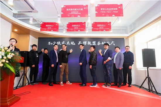 会议现场,住范儿产品中心负责人张晓亮、美豪斯创始人闫海峰、德国哈姆地暖北京区域总经理宁波涛、霍尼韦尔大区总监怀军建以及其它供应商代表一起上台庆祝“5+2住宅系统品牌联盟”成立仪式,承诺共同为消费者打造美好的家装体验。