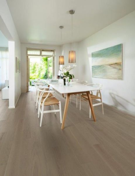 棕色是市面上常见的一款三层实木,但是如果将看似习以为常的事物稍微加以改变,也会创造出别有一番风味的感觉,这款得高Karelia岩盐橡木便是如此。不同于其他纯棕色地板,岩盐橡木朴实无华的棕色中带有天然的深棕色花纹,浅棕色条纹。当整个房间地面都被它占满时,你并不会觉得单调,而是会发现其整体层次鲜明,简约而不简单。当您还没有考虑好用哪一种风格装家时,选择这一款永不会搭错。