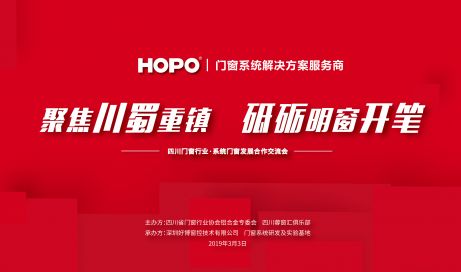 2019年3月3日,由四川省门窗行业协会铝合金专委会、四川蓉窗汇俱乐部主办、HOPO西部运营中心、门窗系统方案研发及实验基地承办,以“聚焦川蜀重镇,砥砺明窗开笔”为主题的四川门窗行业·系统门窗发展交流会在佛山隆重举行。