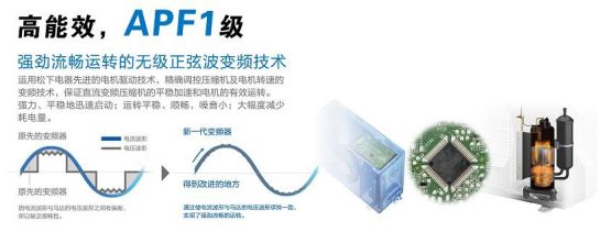 松下新品HE系列运用松下电器先进的电机驱动技术,精准调控压缩机及电机转速的变频技术,保证直流变频压缩机的平稳加速和电机的有效运转。不仅能够实现强力、平稳地迅速启动,而且运转顺畅,噪音小,很好地减少了空调的耗电量。