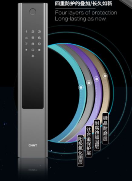 害怕长年累月锁面可能会被腐蚀?别担心面板上还有四重防护的叠加,长久的保证锁面坚固如新,每一重防护只为守护家庭安全!