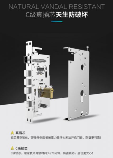 可是,万一遇到一个不讲道理的大胆狂徒,直接强行破坏锁怎么办?放心,正泰智能锁采用C极真插芯即使外侧面板,被暴力破坏也无法开启门锁,保卫家庭,正泰智能锁是认真的!