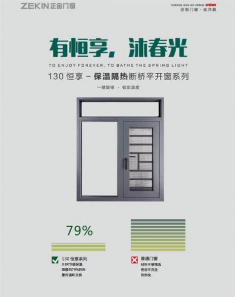 正金门窗一直专注于高性能系统门窗的研发与生产,致力于为全球消费者提供更简约时尚的高性能系统门窗产品。为了加强产品的保温隔热功能,正金门窗不断追求创新并再一次实现重大突破!正金门窗恒享130断桥平开窗系列,保温隔热的黑科技产品,2019年3月正式上市。