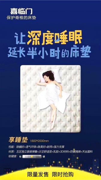 喜临门享睡垫采用泰国天然乳胶层,更高回弹性,完美贴合人体脊椎自然生理曲线;超柔软高密度的防螨海绵,全方位打造微循环空间;天丝面料亲肤顺滑,柔软舒适;5区独立袋装弹簧,精准承托,静音抗干扰;AB面设计带来两种软硬不同的睡眠方案。