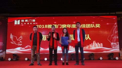 会上,雅晟门窗颁发了年度优秀员工奖、年度优秀经销商奖、年度优秀班组长奖、年度优秀店面建设奖、特殊贡献奖、年度优秀员工奖、年度签单冠军、年度卓越团队奖、年度销量冠军、年度最佳团队奖、年度最具正向能量奖等奖项,对2018年度取得优秀成绩的集体和个人进行了表彰。