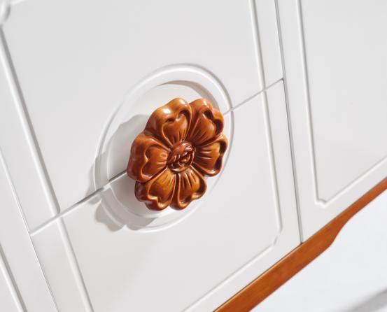 实木花朵造型拉手设计,造型唯美大气,手工雕刻细致,