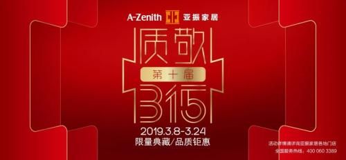 2019年3月8日,第十届“质·敬315”活动正式开启,诚邀尊享品质签单礼、线上专享产品限量典藏、换新服务礼等诸多福利。