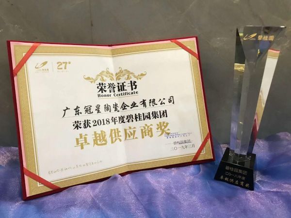 实力认证│冠星陶瓷荣获碧桂园集团“卓越供应商奖”