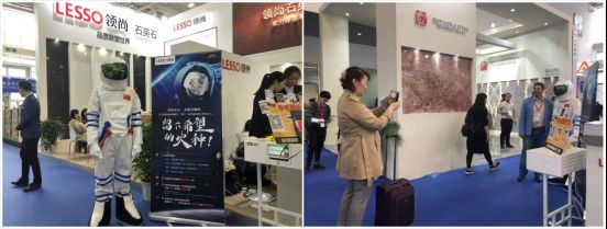 领尚石英石展馆位于B1062位置。展馆设计沿用今年流行的极简风,白色的背景和外立面,为产品的展示提供了更充分的空间。大规格的石英石拼花,丰富的产品体系,让客商感受到领尚石英石在产品研发上的精益求精和工艺精湛。现场更有太空人亲密互动,带你领略流浪地球的科技感,免费的照片打印和礼品赠送,吸引众多客商前来围观参与。领尚石英石在品牌营销推广上的推陈出新,让人惊艳,成为展会一大亮点。