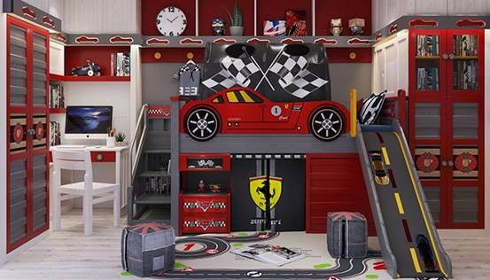 七彩人生全屋定制儿童房延续了“有趣”和“多变”的特点,融入新的“足球、赛车、工业风”等流行元素,针对孩子成长需求和实际居住空间环境来打造充满个性的专属儿童房,承载孩子的美好、欢乐童年。值得一提的是,其中以赛车为主题的极速F1儿童房还将竞逐备受瞩目的金汐奖,也是观展中绝对不能错过的一大亮点。