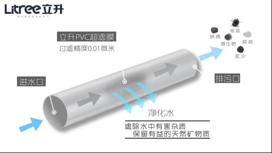 立升全屋中央净水系统,前端是中央超滤净水器,超滤过滤精度达到0.01微米,能有效截留水中的小颗粒泥沙,铁锈、胶体、藻类、细菌等有害杂质,并保留对人体有益的天然矿物质,出水达到直饮标准。