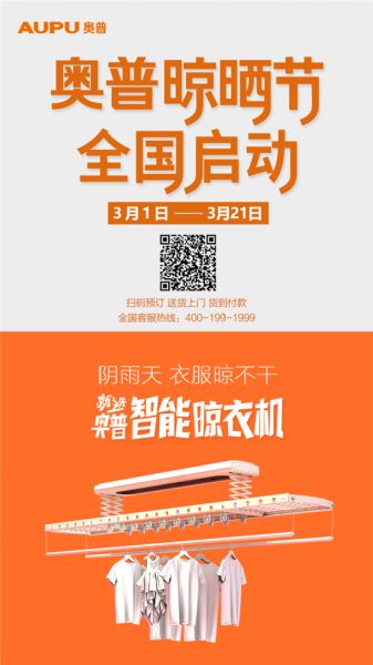 3月1日-21日,奥普晾晒节全国启动,阴雨天衣服晾不干,就选奥普晾衣机。