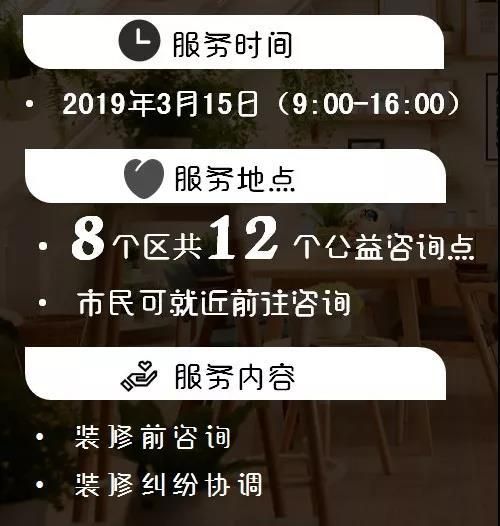市民可于3月15日当天,选择就近的咨询点现场咨询装修问题!