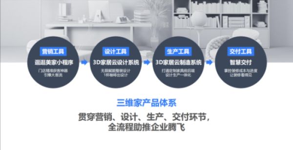 2、3D云制造。定制家居工厂最大的痛点来自于既要满足非标设计,也要满足规模生产。在3D云设计的基础上,三维家通过云制造软件,将设计数据直接对接生产系统,实现前后的端数据打通,真正解决行业的核心问题。