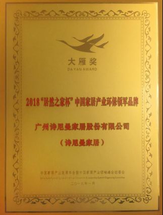 2019年获大雁奖2018“居然之家杯”中国家居产业环保领军品牌