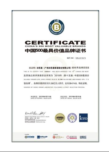 中国500最具价值品牌证书(世界品牌实验室/世界企业家集团联合颁发)