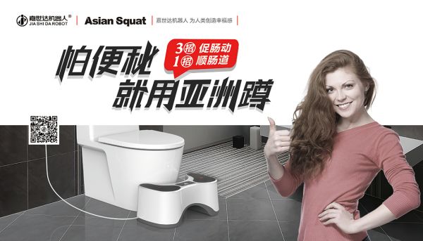 2018年10月,嘉世达机器人推出一款缓解便秘的产品——亚洲蹲。据商家介绍,亚洲蹲设计原理涵盖《黄帝内经》《现代光疗学》《人体工程学》《音乐解压》等多个学科,坚持长期使用可有效缓解便秘。