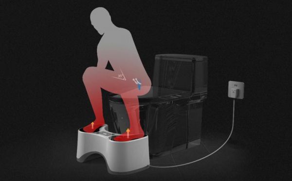 据斯坦福大学研究表明,使用马桶如厕时腿部与身体呈90°夹角,会导致肠道扭曲,造成排便紧张。当夹角低于35°时,可减少盆骨底紧张、降低直肠阻力,最终达到肠道顺畅的目的。因此,亚洲蹲通常与马桶配合使用。