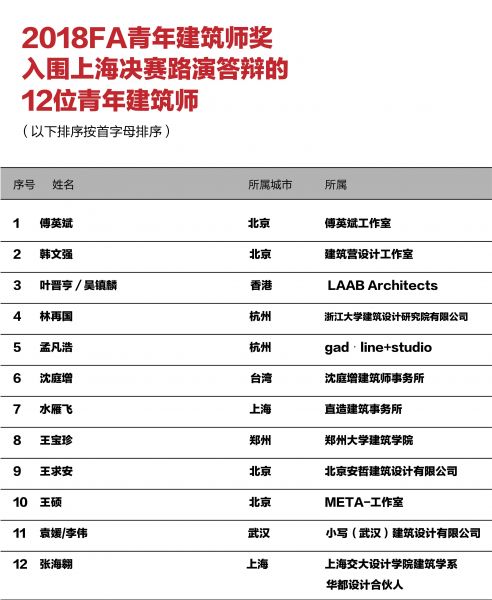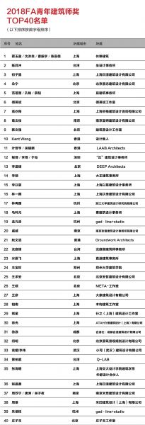 年轻的力量|2018FA青年建筑师奖TOP40名单新鲜出炉