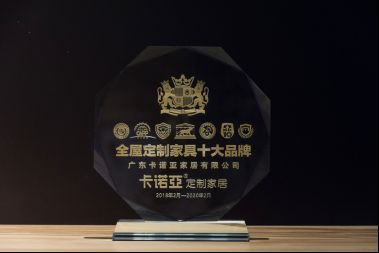 近日,刚刚获得“2018-2019年度广东家居业智能制造创新领军重点建设企业金尖奖”的卡诺亚,再度勇夺“全屋定制家具十大品牌”殊荣。据悉,该奖项由非营利性、具独立的学术品格和价值取向、业界享有良好口碑和公信力的CNPP品牌研究(亚洲)推荐,并经中国十大品牌数据规模最大、最全、最高知名度及认可度的查询网站——买购网公布。