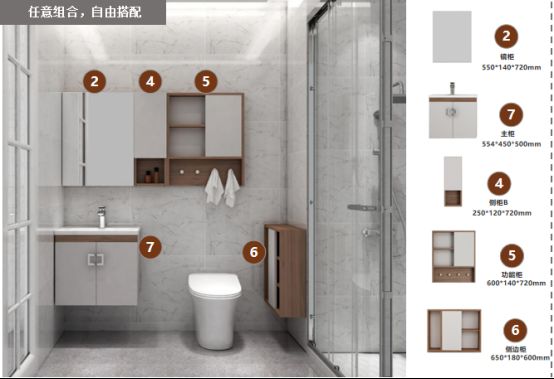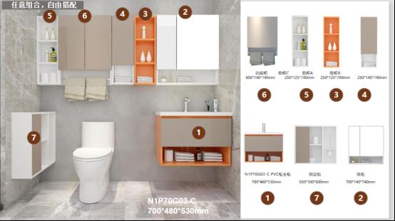 轻定制不单单是为你设计出全套的方案,更重要的是,你可以根据自己的需求和使用习惯,将各部分浴室柜进行定制化的排列组合。还在犹豫什么呢?各部分的功能划分,收纳组合已经为你准备完全,接下来只需要对自己卫浴格局进行个性化的排列组合就可以大大提高生活中的幸福感啦~