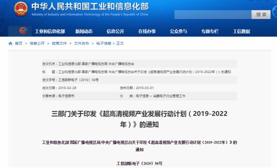 日前,工信部、国家广播电视总局、中央广播电视总台印发《超高清视频产业发展行动计划(2019-2022年)》(以下称计划)。计划要求,通过设立超高清视频产业投资基金等方式,支持超高清视频产业创新发展。支持超高清视频企业与金融机构加强对接合作,通过市场机制引导多方资本参与。按照“4K先行、兼顾8K”的总体技术路线,大力推进超高清视频产业发展和相关领域的应用。