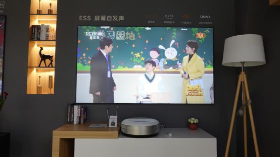 长虹在今年AWE上展出的另一重磅产品,就是搭载了专用ESS自发声激光电视屏幕的三色4K激光电视C7UT。