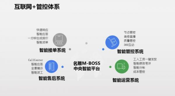 目前,一体化、信息化已成为名雕的标签,所有流程都可在线上管理系统中进行。名雕作为“中高端家装一体化”服务商,秉承着“与时俱进,开拓创新”的发展思路,将科技、智能、互联网思维融入家装,建立大数据资源库。充分发挥信息化优势,在前端接单、设计、施工管理、物流配送、财务数据、内部控制等业务流程实现信息化互联,各端口信息资源共享,打通家装业务链的每一个环节,实现业务、管理协同发展。