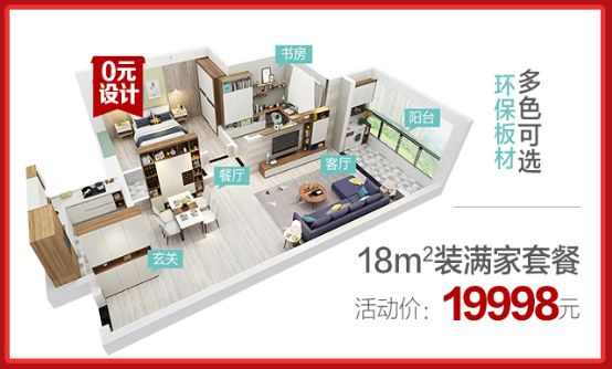 1、装满家系列,18m²非活动价23998元,现价19998元,可轻松搞定2室1厅!