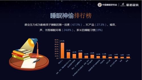 据白皮书数据显示,有62.9%的青少年睡眠不足8小时,其中13-17周岁青少年睡眠时间严重缩短,睡眠时长低于6小时的占比高达81.2%。而在如此严峻的睡眠问题中,繁重的课业压力已经成为影响孩子睡眠的第一因素,占比高达67.3%。