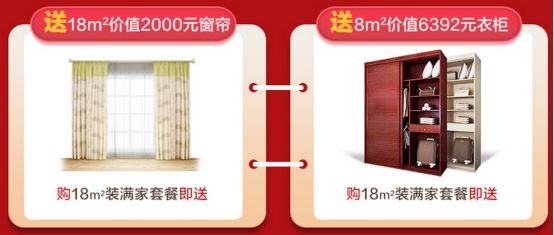 1、购18m²装满家套餐即送18m²价值2000元窗帘+8m²价值6392元趟门衣柜。