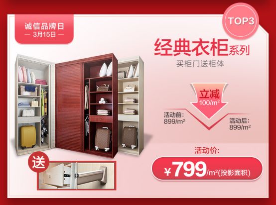 3、经典衣柜系列,每平米投影面积非活动价899元,现价799元!