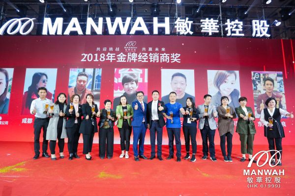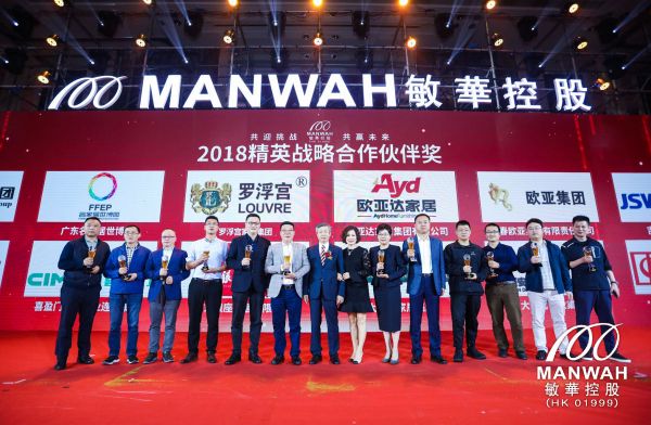 现场颁发了2018敏华控股年度商场战略合作伙伴、敏华控股2018年年度异业联盟战略合作伙伴奖、2018敏华控股年度优秀经销商和年度优秀店长的颁奖。