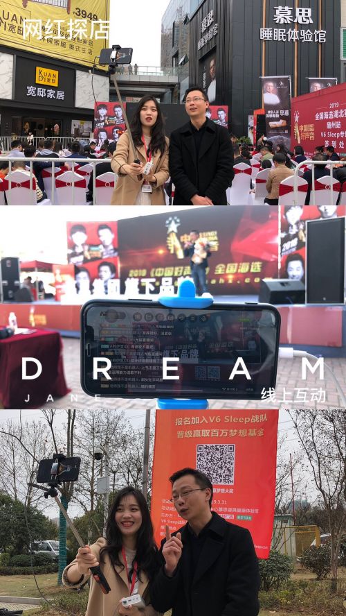 图片:网红小姐姐现场采访慕思V6 Sleep 经销商们,线上线下互动。线上粉丝表示:愿意来现场感受比赛氛围,并向负责人喊话:“买慕思床垫有没有优惠啊,求送,让我有个好睡眠吧……”前期的采访及直播拉开了赛事的帷幕。