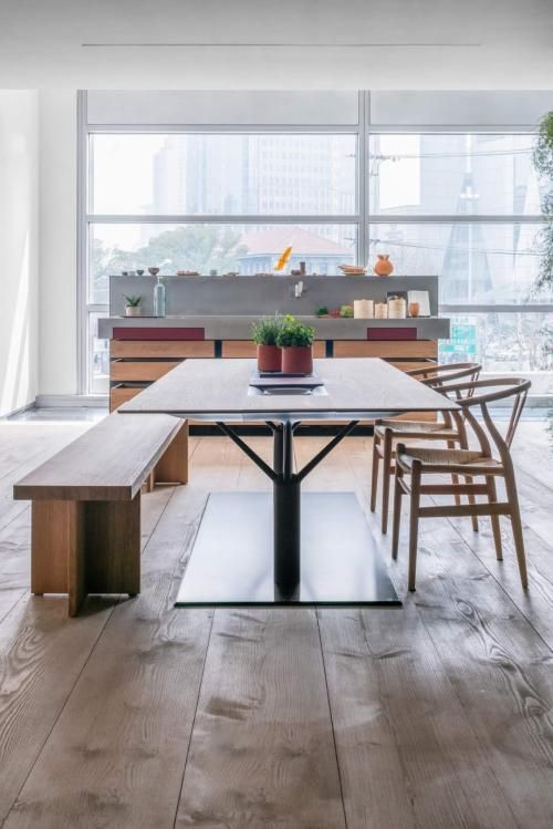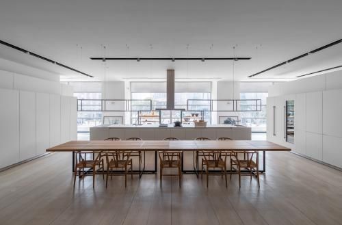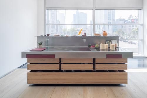 b.architecture是一个整体空间概念,工作与休闲兼用,由一张长桌和两侧的长凳组成,赋予空间运用更高的自由度,同时也是对话交流和欣赏食物的地方。长桌上的模块采用创新的工程技术,提供卓越的冷却和加热功能,以特制的方形长棒简单操作便能轻松调控水流温度,适合预备食材和享受小食。另设有其他智慧型配件及细节,包括拉出式托盘、香草盆和砧板等,方便烹饪操作和巧妙收纳厨房用品。