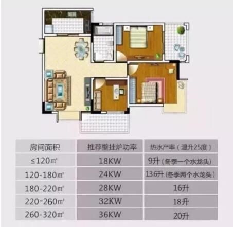 关于小松鼠壁挂炉功率与使用房间面积,大家基本上可以参考这个标准来