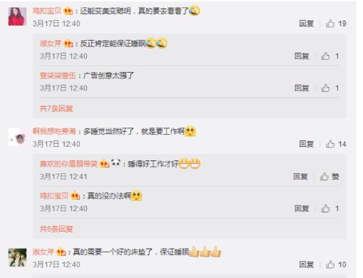 不论是新品的发布,还是后期的主题传播,都能看到喜临门在尽量将产品的卖点、睡眠节主题融入到符合社交属性的趣味内容中,以用户喜闻乐见的形式,引导教育消费者“睡眠健康”的重要性和对生活的价值,这种营销方式更容易触达到用户,形成品牌的独有烙印,对品牌传播来说是恰当且有效的途径,值得不断创新和尝试。