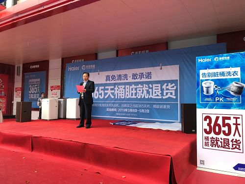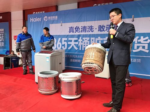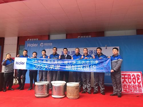 3月23日,海尔湖南分公司洗护产业在衡阳市新泰阳家电蒸湘北路店,开启365桶脏就退货活动。