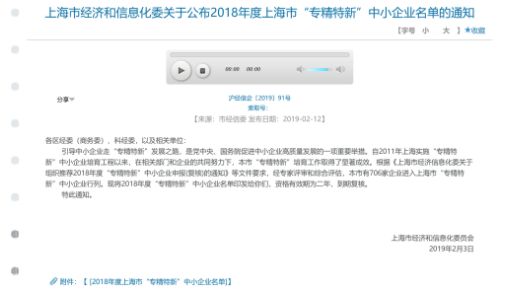 据上海经信委的信息,引导中小企业走“专精特新”发展之路是国家促进民营中小企业实现高质量发展的重要举措。国家促进中小企业发展十三五规划、《促进大中小企业融通发展三年行动计划》等都将“专精特新”中小企业培育作为一项重要工作,引导中小企业走“专精特新”发展之路。早在2010年,上海就率先启动实施“专精特新”中小企业培育工程,定期开展“专精特新”企业遴选复核,举办领军人才和专业人才培训,开展质量提升、市场拓展、品牌建设等活动,培育了一大批专注细分市场、创新能力强、掌握关键核心技术的中小企业。据统计,2018年境内新上市企业中超过50%来自“专精特新”,《寻找中国制造隐形冠军》(上海卷)中超过50%企业选自“专精特新”,市级百强民营制造业企业中有三分之一来自“专精特新”。“专精特新”企业已成为本市中小企业发展最好水平的代表。未来将围绕市委、市政府促进民营中小企业发展的战略部署,做好“专精特新”企业培育工作。完善企业培育体系。以“专精特新”企业为基础,不断延伸培育工作广度和深度,与制造业单项冠军、专精特新“小巨人企业”、高成长性科创企业及重点民营企业培育有机结合,形成更丰富的重点企业队伍和更完善的企业培育体系。探索开展梯度培育。