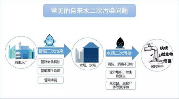 我国自来水在出厂时已能达到《生活饮用水卫生标准》(GB5749-2006)的要求,品质丝毫不次于欧美等发达国家。但是,自来水需要通过管路运输到达千家万户,对于高层住宅用户,还要通过水箱储水的方式二次供水。这些设施因为老旧腐蚀会产生泥沙、铁锈、胶体以及细菌等有害杂质,从而造成自来水的二次污染。
