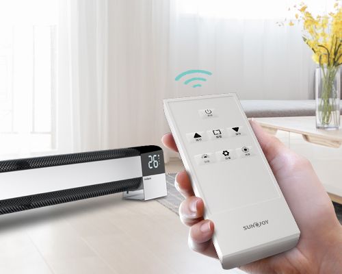 SUNJOY踢脚线取暖器可以智能恒温控制,当室温高于设定温度时,自动低功率工作,当室温低于设定温度时则自动开启,让全屋保持恒温状态,同时还支持智能遥控二十四小时定时功能,晚上睡觉前只需调好温度,就能让你享受一晚的暖意啦。SUNJOY踢脚线取暖器就在你的家中角落里,默默为你带来温暖,这也许是美好生活扑面而来的幸福吧。