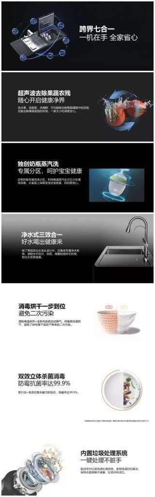超悦洗碗机在集成水槽和洗碗机的基础上,跨界集合更多的厨房洗净工作——果蔬洗、奶瓶蒸汽洗、软化净水、海鲜洗、杀菌消毒、垃圾处理——从前黄金组合需要 3 个人才能做的事情,现在只要 1 个人。全方位满足用户的不同生活需求,只为取悦你。
