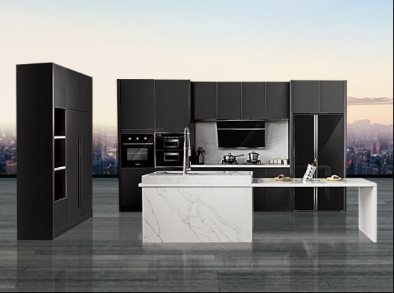外观设计采用深灰色作为主色调,摒弃繁缛的配饰,演绎极简的风姿。实木门板经多道油漆工艺处理把木材毛孔纤维导管填实,形成光洁的表面,不易受潮、落脏。