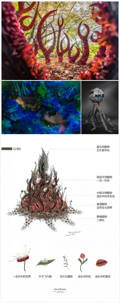 ▲设计丨Tom De Houwer、初二、2019中国花园节先锋花艺展手绘图丨羊头