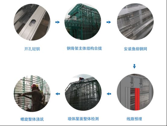 轻钢别墅的优势,性能优于混凝土及传统砖混房屋,造价低于传统砖混房屋。节能环保、抗震9级、保温隔热、隔音性强、节省工时、得房率高。6个步骤全搞定:1、开孔轻钢2、安装蛛形钢板网3、钢骨架与钢网形网笼状主题结构合拢4、墙体屋面安装施工5、线路预埋施工6、浇筑施工。