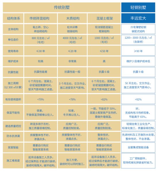 丰远宏大轻钢别墅通过机械化高效施工,15天即可完成一套别墅的建造,具有高抗灾能力,节能降耗,绿色环保,大大减少了施工过程中砂、石、灰等资源消耗,符合住宅产业化和可持续发展的要求,成为全国新建别墅的标杆,更成为一个受到追捧的好项目。