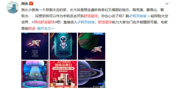 此次「寻找舒适星球」趣味H5的画面风格和互动体验都深得用户好评,该内容上线后,@顾奈、@种草小当家等也相继对#寻找舒适星球#进行了个人化阐发,进一步提高态度声量、扩大话题影响。