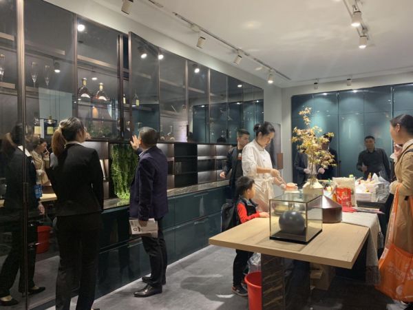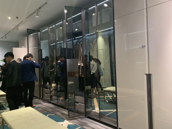 第二个就是风格。我们今年把轻奢的这种风格展现出来,打通了橱柜和衣柜的两个一体化。以前橱柜是橱柜的风格,衣柜是全屋的风格,今年我们把整体轻奢风格打通了。第三个是整个结构的变化,我们今年的柜子都比较高,消费者家里就是顶天立地的那种设计的感觉,在传统工艺上做的变化。