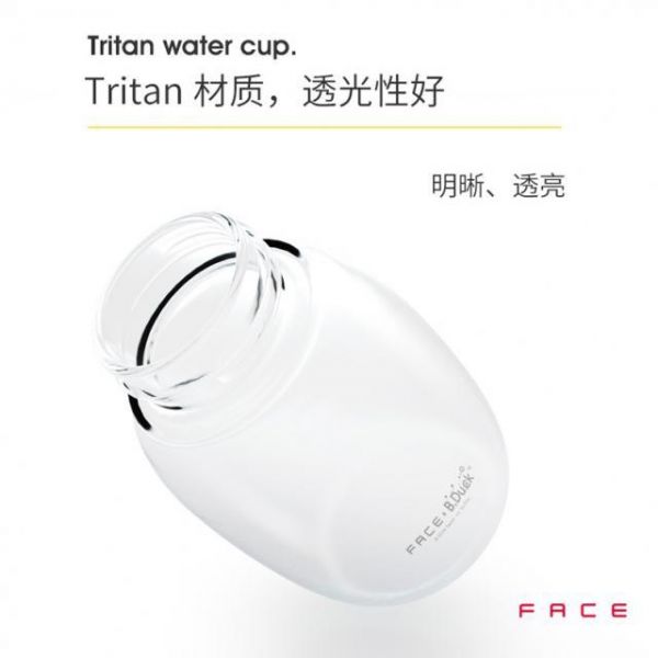 最后要说的材质就是Tritan材质,Tritan材质是新一代共聚酯。在性能方面,传统的PP是常见的普通塑料,而新生代Tritan是新生代特殊材料,所以Tritan水杯的性能明显优于PP水杯,像FACE的塑料水杯就是此种材质。